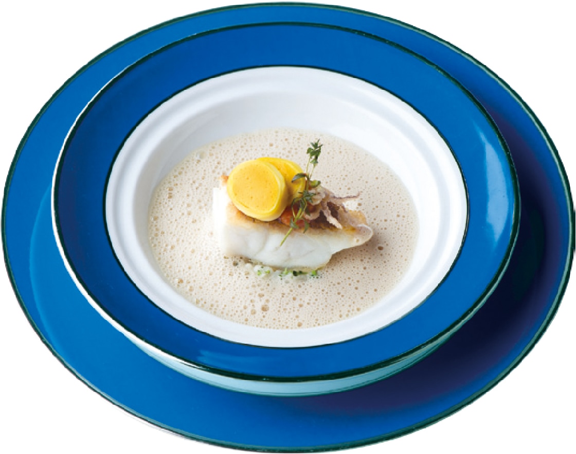 香ばしく焼き上げた真鯛と柔らかなイカの絶妙なハーモニー。白ワインベースの香り豊かなソースと合わせて。