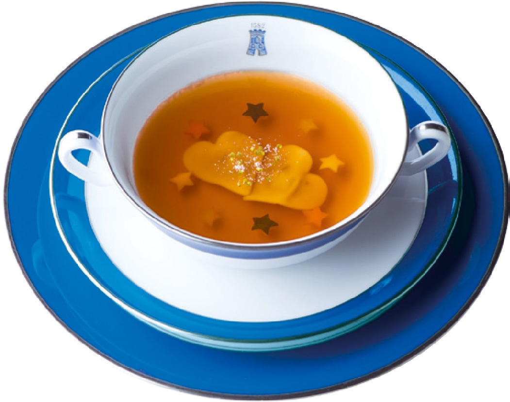 鴨料理がスペシャリテの「トゥールダルジャン 東京」ならではのコンソメ。すっきりとしながらも濃厚な味わい。