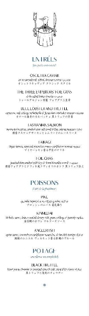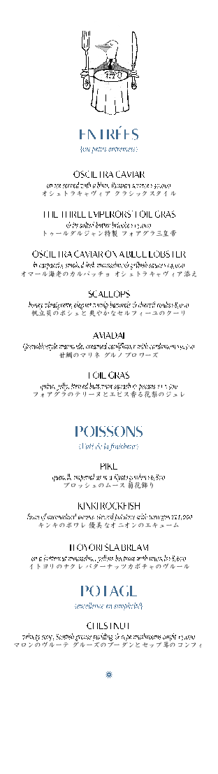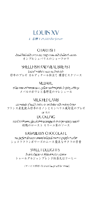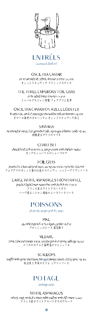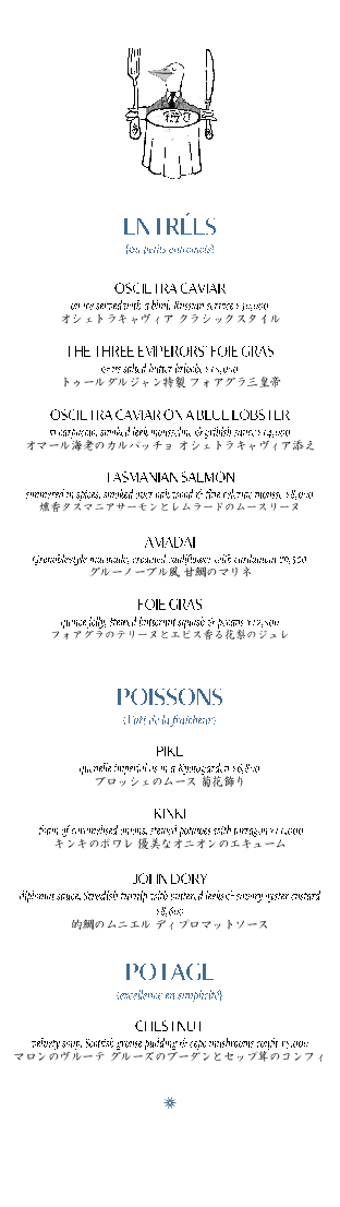 Various blessings of the seasons inspire Executive Chef Renaud Augier to create a delightful collection of the most exclusive dishes.