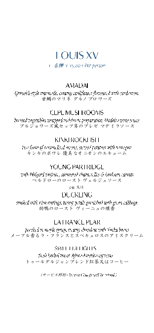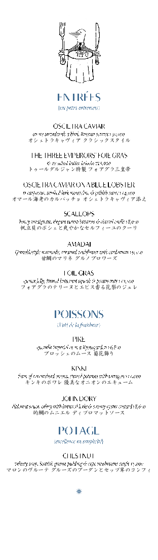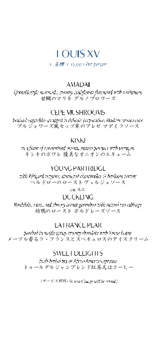 The greenery of the 400-year-old Japanese garden bathed in sunlight offers a contrasting vista compared to that in the evenings. Savor Parisian esprit in the courtly yet relaxed atmosphere of the dining room in the early afternoon.